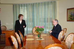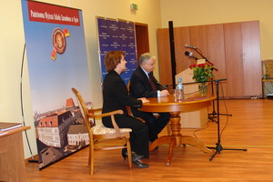 Fot.6 Rektor PWSZ w Nysie, prof. Zofia Wilimowska oraz Prezydent RP Lech Kaczyński podczas spotkania w Sali Senatu PWSZ w Nysie