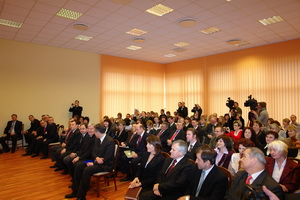 Fot.4 Uczestnicy spotkania z Prezydentem RP Lechem Kaczyńskim w Sali Senatu PWSZ w Nysie
